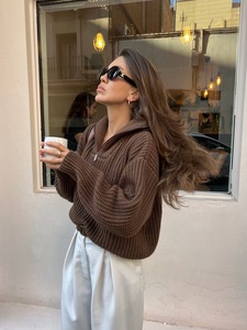 2025秋冬简约纯色针织衫新款半拉链毛衣针织时尚慵懒百搭上衣批发