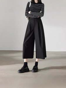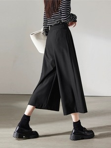 哥家商场同款女装2025秋季时尚宽松高腰通勤九分休闲阔腿裤裙裤