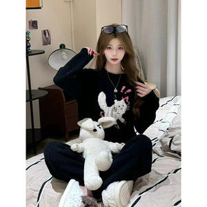 【现货】ins软糯半边绒睡衣女冬季2025保暖针织衫长裤家居服套装潮