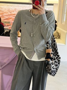 高版本RL拉夫刺绣小马标圆领针织衫百搭休闲纯色长袖上衣开衫女