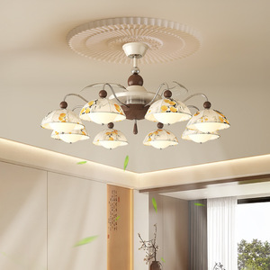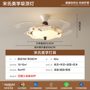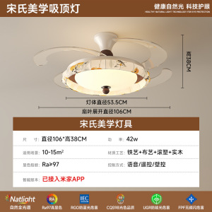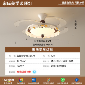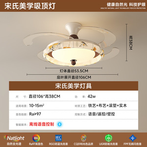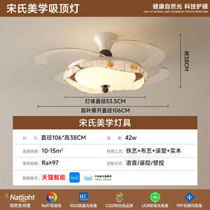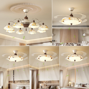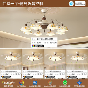 隐形风扇灯餐厅主卧室灯具智能风扇灯2025新款客厅吊灯中古风静音