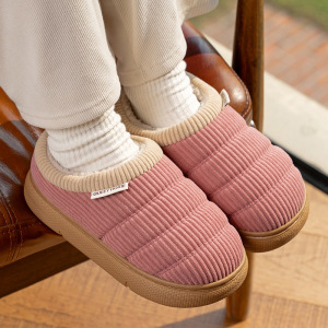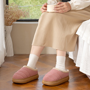 防滑棉拖鞋女冬季外穿2025新款室内居家厚底防臭加绒保暖老人鞋男