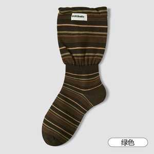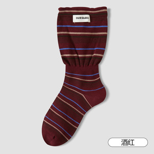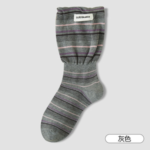 复古条纹袜子女2025秋款韩版宽松袜口中筒袜潮流布标学院风堆堆袜