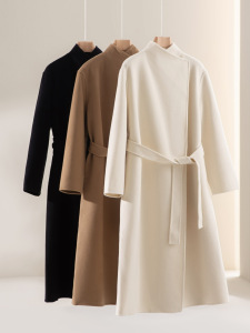 渴盼双面羊绒大衣女高级感长款系带宽松翻领毛呢外套冬季羊毛女装