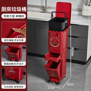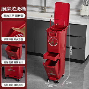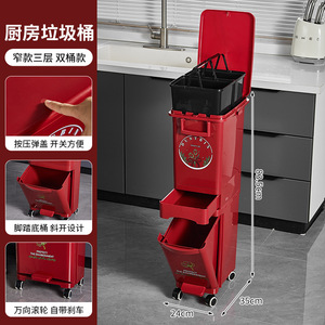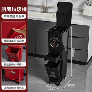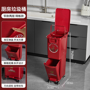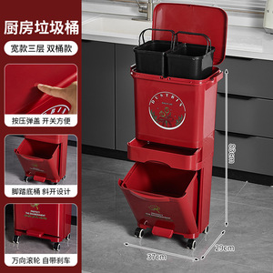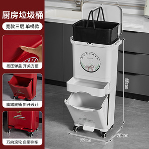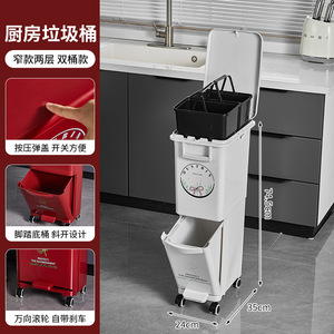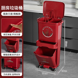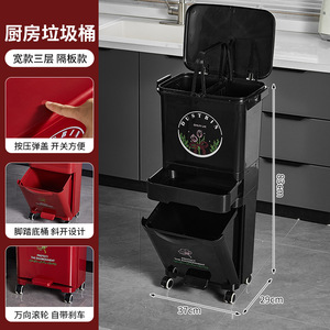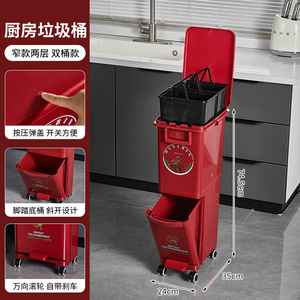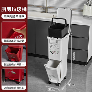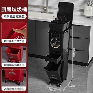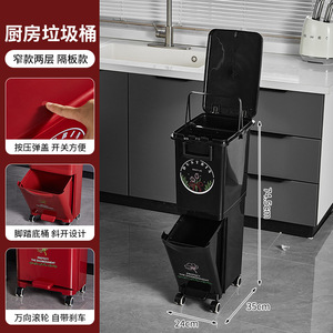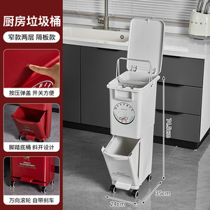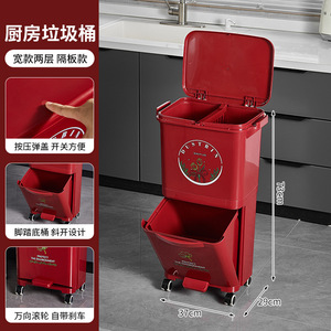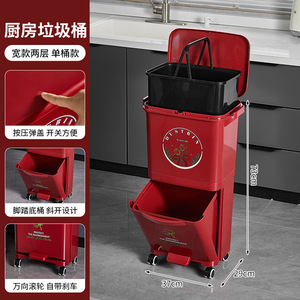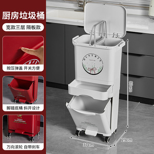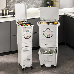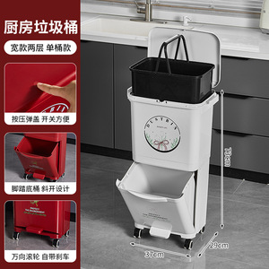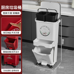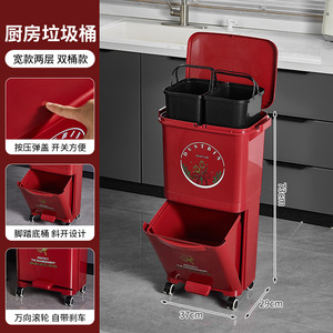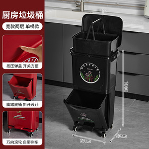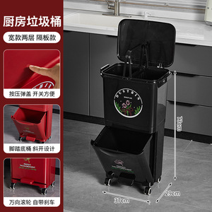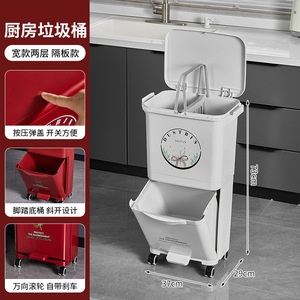 厨房垃圾桶家用带盖大容量脚踏一体防臭双层厨余干湿分离分类日式