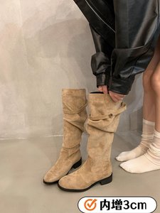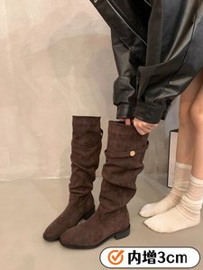 软皮版~内增高圆头直筒靴2025秋季新款复古显瘦休闲不过膝长靴子