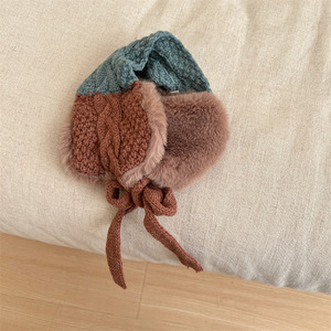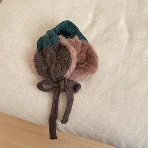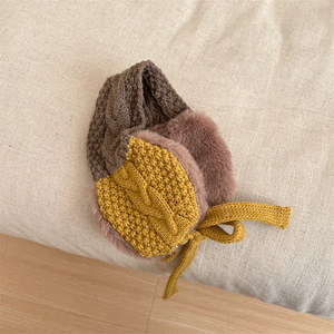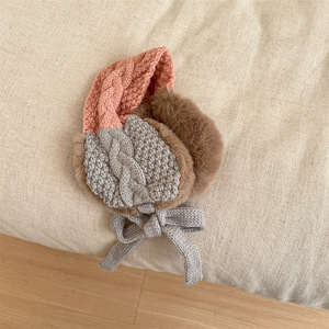 时尚个性拼色针织儿童耳罩 冬季男女童时髦设计系带包头耳捂批发