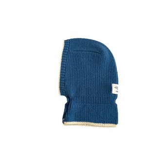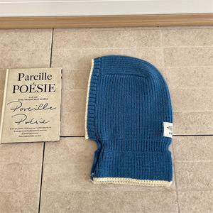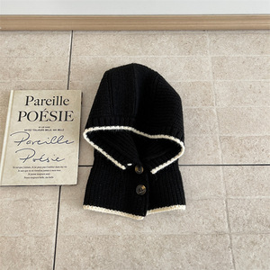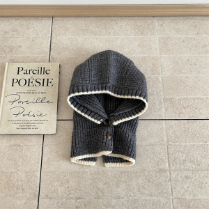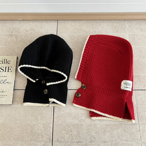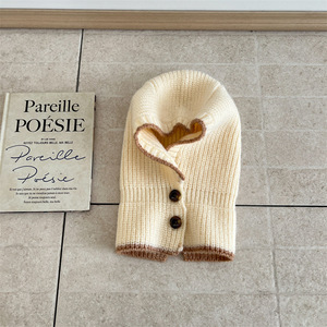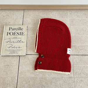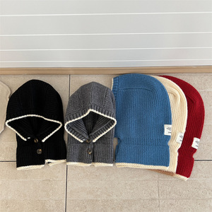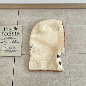 韩国时尚拼色儿童巴拉克拉法帽 冬季男女童纽扣保暖毛线帽护耳帽