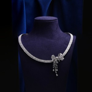 S925纯银满钻t方项圈欧美锁骨链高级感蝴蝶结项链女跨境爆款颈饰