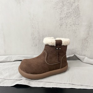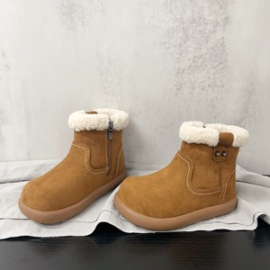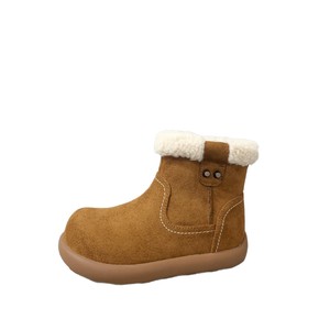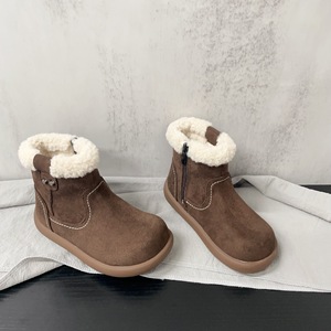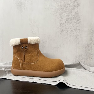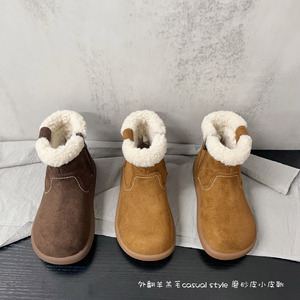 外翻羊羔毛简约纯色款磨砂皮保暖舒适二棉皮靴2025年冬款男女童鞋