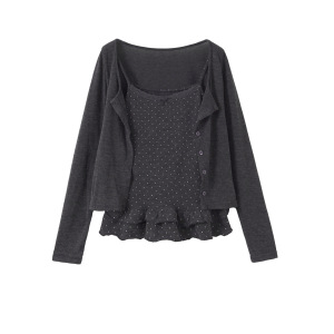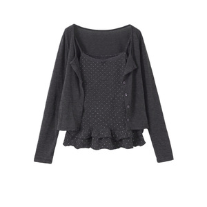 MR【原版品质】韩系长袖开衫外套女秋季甜美荷叶边波点内搭吊带上