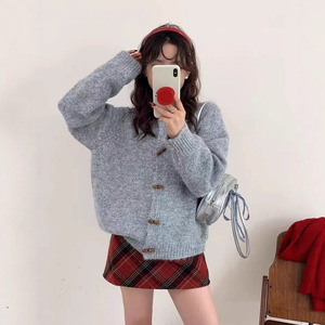 艾!DA1235氛围感牛角扣毛衣开衫长60-仅供货经销商不退换