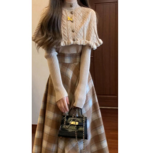 法式千金风斗篷毛衣连衣裙子女秋冬2025新款高级感小个子香风套装