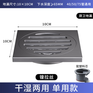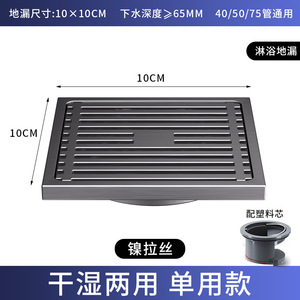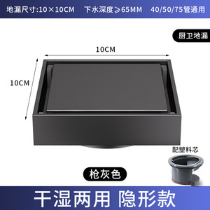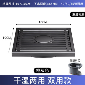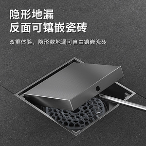 枪灰色地漏不锈钢防臭器卫生间浴室下水道长条隐形浴室洗衣机厕所