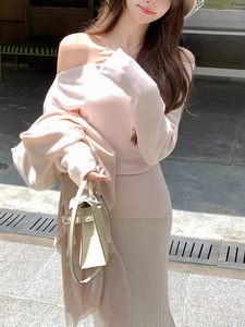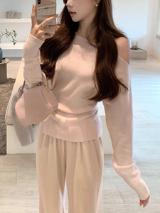 慵懒步调 羊毛蝙蝠袖斜肩针织衫上衣女