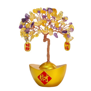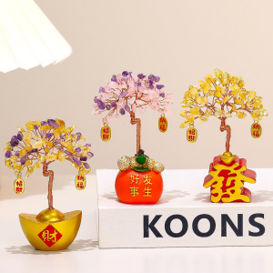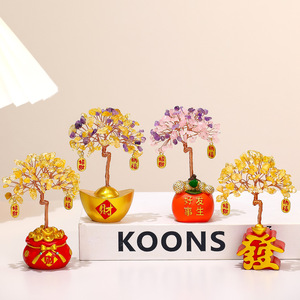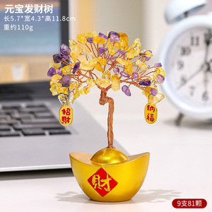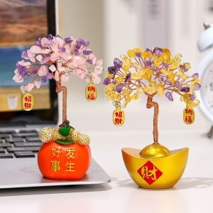 国潮福袋水晶发财树办公室工位桌面治愈系装饰品家居客厅摆件礼品