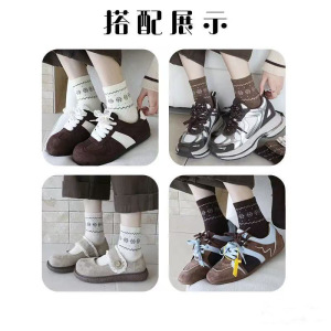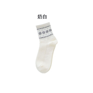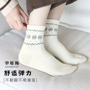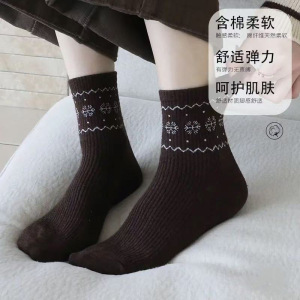 秋冬袜子女韩系中筒袜美拉德风休闲百搭长筒棉袜费尔岛雪花堆堆袜
