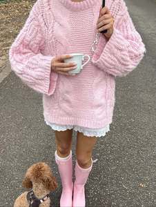 2025新款毛衣欧美休闲度假毛织长袖大毛衣慵懒风甜美上衣女装