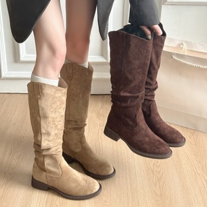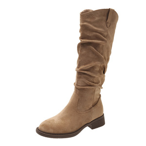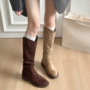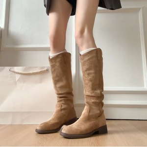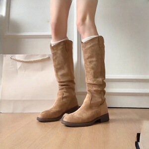 复古美拉德粗跟西部牛仔靴2025秋季新款气质百搭圆头高筒骑士靴女