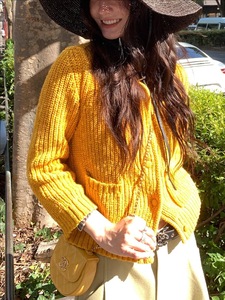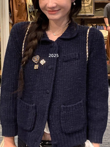 TORON 高克重棉质九分袖复古针织开衫女秋季娃娃领宽松显瘦上衣