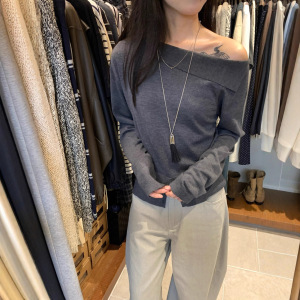 2024新韩系气质一字领针织衫毛衣女秋冬宽松慵懒风露肩设计感上衣