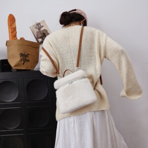 25秋冬新款日韩毛绒手提包仿貂毛双肩包甜美风背包packbag606#