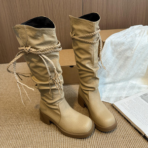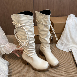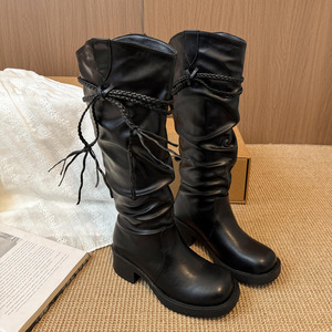 粗跟靴子女长筒靴2025新款秋季复古高跟堆堆靴显瘦高筒骑士靴
