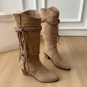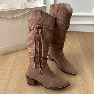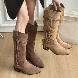 女鞋复古编织流苏骑士靴女2025秋季款粗跟显瘦中筒埃及靴废土堆堆