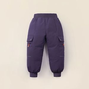 新国标90白鸭绒纯色拉链工装羽绒裤中大童男童女童保暖加厚白鸭绒