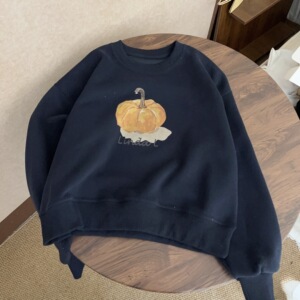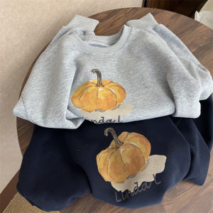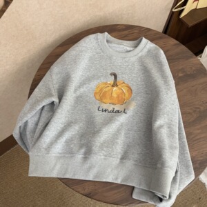 油画南瓜韩系简约休闲百搭圆领卫衣女宽松休闲百搭上衣女外套女