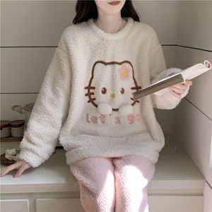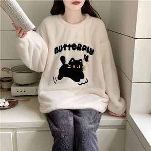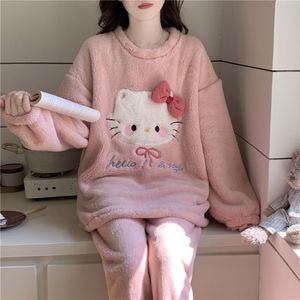 半边绒睡衣女秋冬季加厚保暖甜美卡通珊瑚绒少女家居服套装可外穿