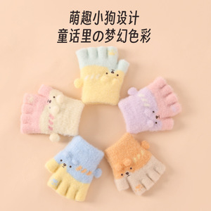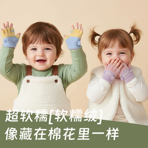儿童手套秋冬天半指保暖男女宝宝可爱婴儿幼加厚针织小孩婴儿手套