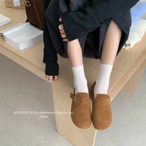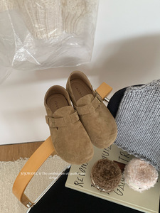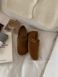 真皮勃肯鞋女2025新款秋冬复古日系丑萌单鞋一脚蹬百搭休闲平底鞋
