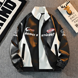 皮衣男机车服立领痞帅赛车服工装外套男港风ins潮牌春秋季情侣款