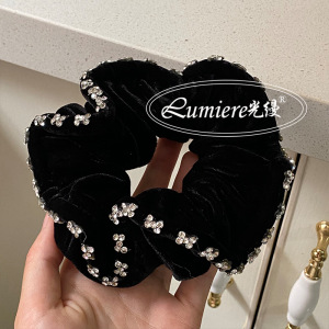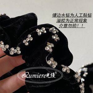 手工贴钻镶边黑色丝绒大肠发圈轻奢优雅高级小众日韩新款发绳发饰