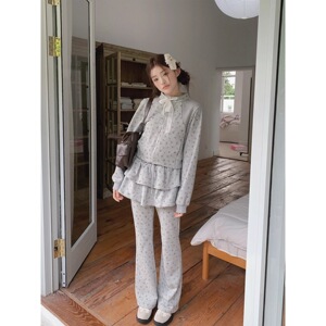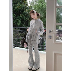 2025秋冬季新款高级设计感碎花清新甜美卫衣外套长裤套装女两件套