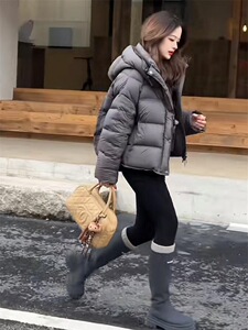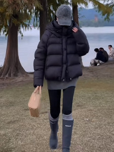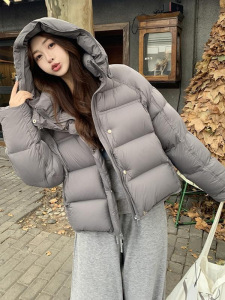云朵泡芙羽绒服女白鸭绒短款小个子加厚面包服平湖羽绒服流行外套