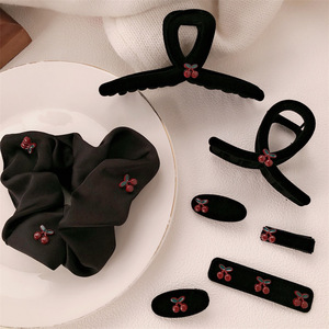 新款樱桃抓夹高级感大肠圈发夹半扎发鲨鱼夹中号头发后脑勺夹子