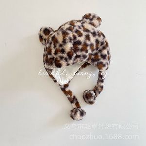 INS时髦冬款儿童潮豹纹小熊雷锋帽加内里男童女童羊羔毛雷锋帽