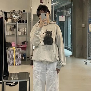 韩国潮牌itzavibe天使猫咪卫衣连帽纯棉宽松圆领李帝努罗民同款