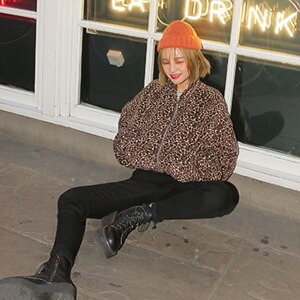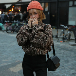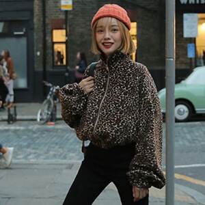 KOREA 美式校园风小众潮流翻绒亲肤豹纹街头辣妹保暖短外套