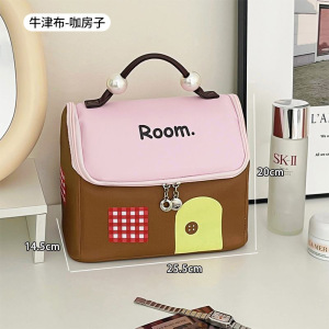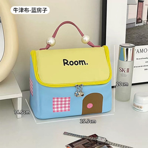 2025可爱芝士高颜值大容量房子包区分防水洗漱包手提撞色化妆包