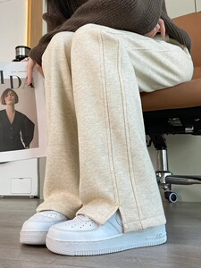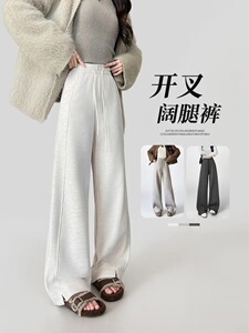 2025新款开叉羊绒阔腿裤女秋冬宽松直筒高个子加绒加厚休闲糯米裤