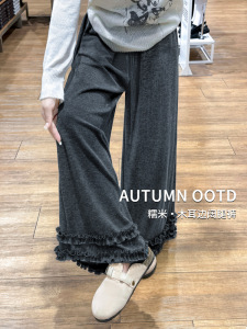 韩系慵懒风糯米裤女春秋垂坠感软糯休闲拖地遛弯长裤直筒阔腿裤子