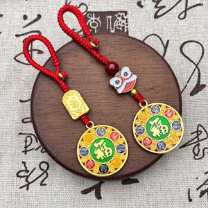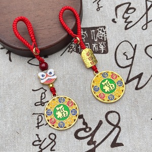 新中式福字挂件古法金珐琅彩合金挂件滴油饰品匙扣挂饰吊坠钥匙扣