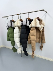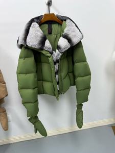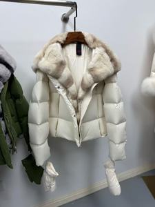 2025冬新款短款白鹅绒羽绒服女连帽天然兔毛领带手套加厚保暖外套