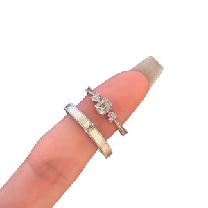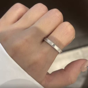 2025新款银色拉丝戒指女小众设计时尚百搭锆石开口指环小红书同款