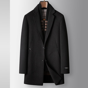 手工男式大衣2025秋冬中长款围巾领脱卸鹅绒内胆青年商务羊毛外套