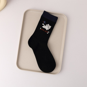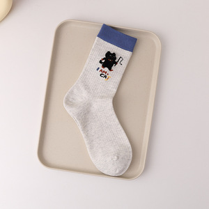 原创卡通袜子女中筒袜春秋款棉袜ins潮可爱小猫钓鱼卡通秋天长袜