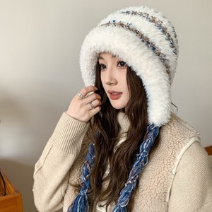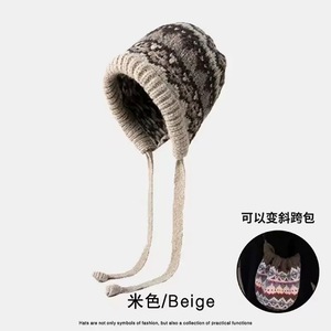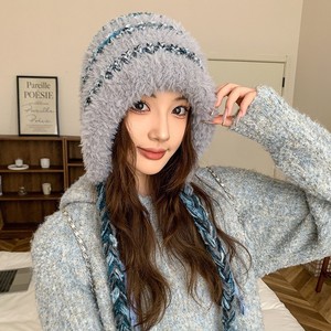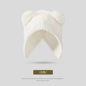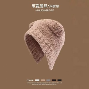 韩版可爱小羊毛绒帽子女秋冬季保暖绑带针织护耳帽百搭套头雷锋帽